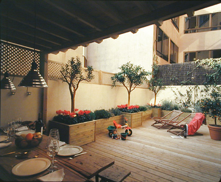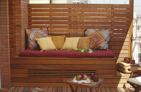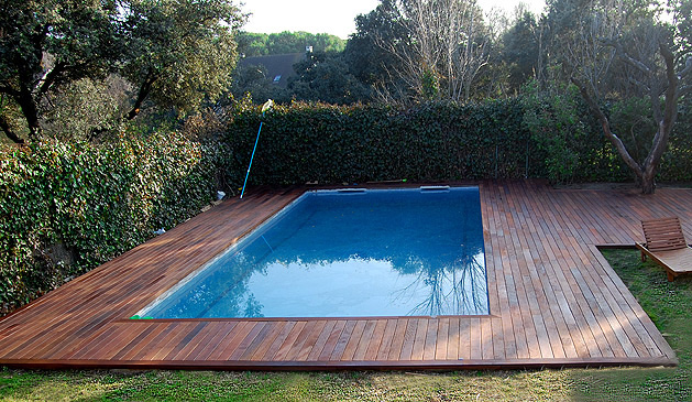 exterior en losas de 30x30cms en Ipé o pino tratado,